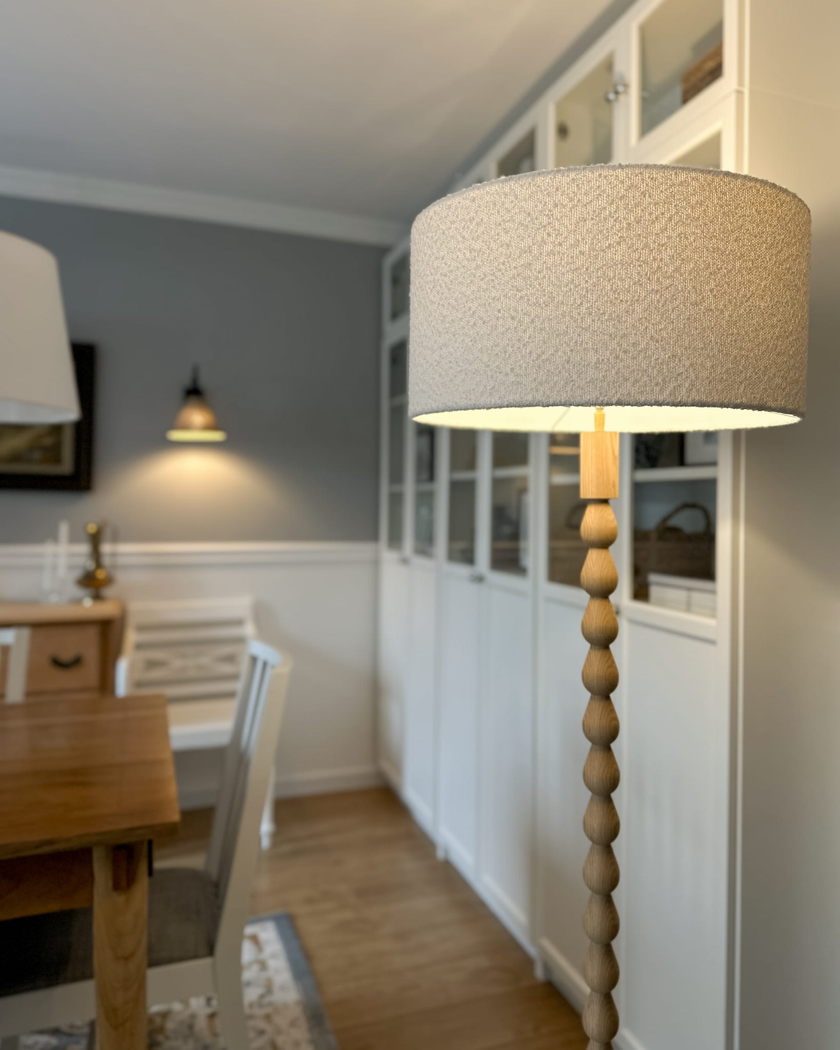 Tkanina bouclé zachwyca ciepłem i przytulnością dzięki wyraźnej strukturze. Teraz możesz wprowadzić ją do wnętrza nie tylko w formie mebli tapicerowanych lub tekstyliów, ale również w oświetleniu. Abażur z tkaniny bouclé pięknie rozprasza i zmiękcza światło, tworząc nastrojową atmosferę. Za dnia natomiast zachwyci Cię ocieplającym wnętrze splotem materiału.
