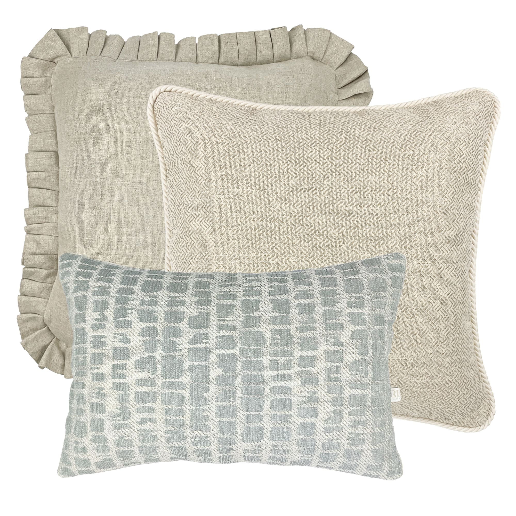 Zestaw trzech poduszek w dwóch rozmiarach idealnie sprawdzi się na kanapie, szezlongu, siedzisku pod oknem lub pojedynczym łóżku. Wybierz starannie skomponowany zestaw poduszek z wyselekcjonowanych tkanin i ciesz się przytulną aranżacją na lata.