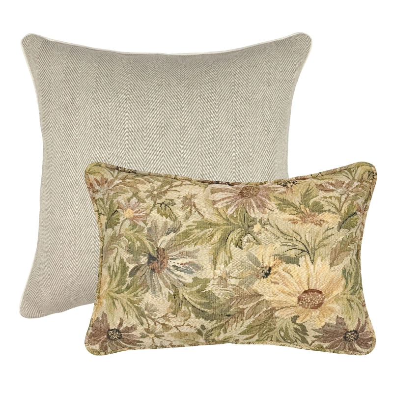 Zestaw dwóch poduszek w dwóch rozmiarach idealnie sprawdzi się na kanapie, fotelu, szezlongu, siedzisku pod oknem lub pojedynczym łóżku. Wybierz starannie skomponowany zestaw poduszek z wyselekcjonowanych tkanin i ciesz się przytulną aranżacją na lata.