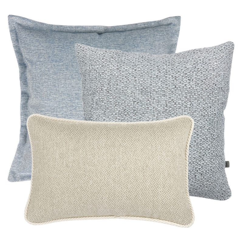 Zestaw trzech poduszek w dwóch rozmiarach idealnie sprawdzi się na kanapie, szezlongu, siedzisku pod oknem lub pojedynczym łóżku. Wybierz starannie skomponowany zestaw poduszek z wyselekcjonowanych tkanin i ciesz się przytulną aranżacją na lata.