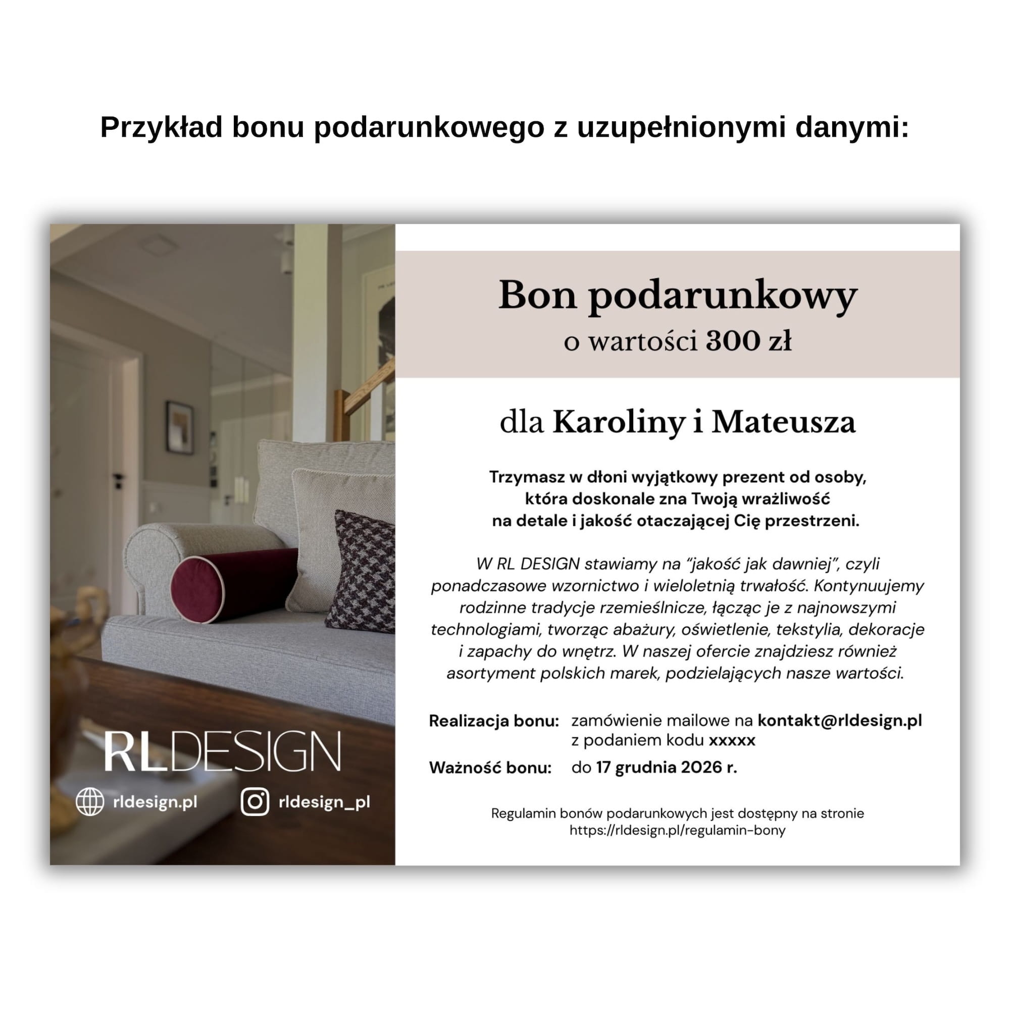 Bon podarunkowy RL DESIGN