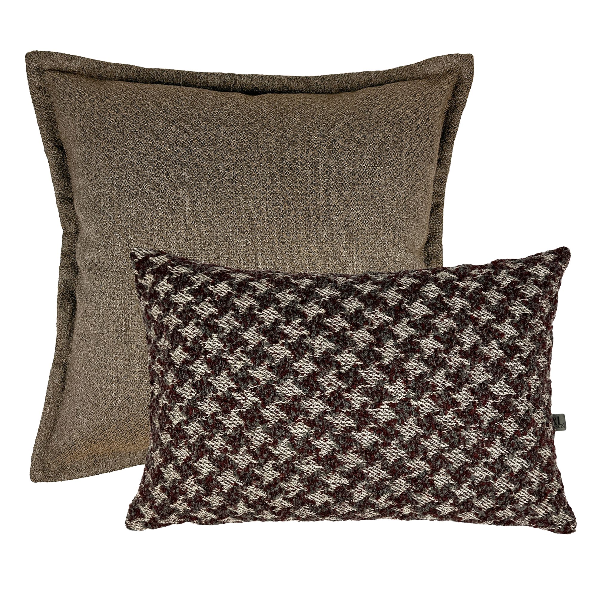 Brązowo-bordowy zestaw poszewek No. 10 zachwyci wielbicieli ciemnych kolorów w ciepłych tonach. Kojące kolory ziemi i różnorodne struktury tworzą idealną kompozycję. Brązowa poszewka RAVIOLI z ozdobną ramką z tkaniny z wyraźną strukturą świetnie łączy się z miękką poszewką BURGUND ze wzorem pepitki w odcieniach burgundu i grafitu. Cały zestaw wprowadza do każdego wnętrza przytulność ciemnych kolorów ziemi.