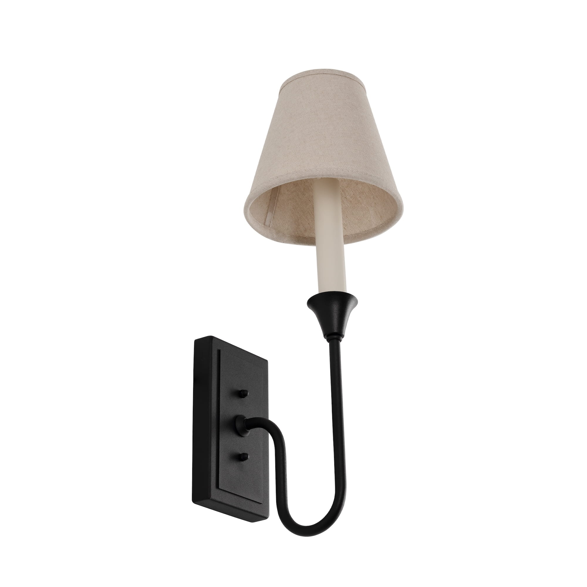 Poznaj idealnie zbalansowane połączenie elegancji i funkcjonalności. Czarny kinkiet z abażurem BELLA jest inspirowany dekoracyjnymi świecznikami, dzięki czemu zachwyca niesamowicie ozdobnymi detalami. Gięta forma, ozdobna przyściennica i oprawa przypominająca świecę wprowadzają do wnętrza elegancję i odrobinę nostalgii. A co z tą funkcjonalnością? Lniany abażur zapewnia przyjemne, nastrojowe światło, rozświetlające każdy wieczór.