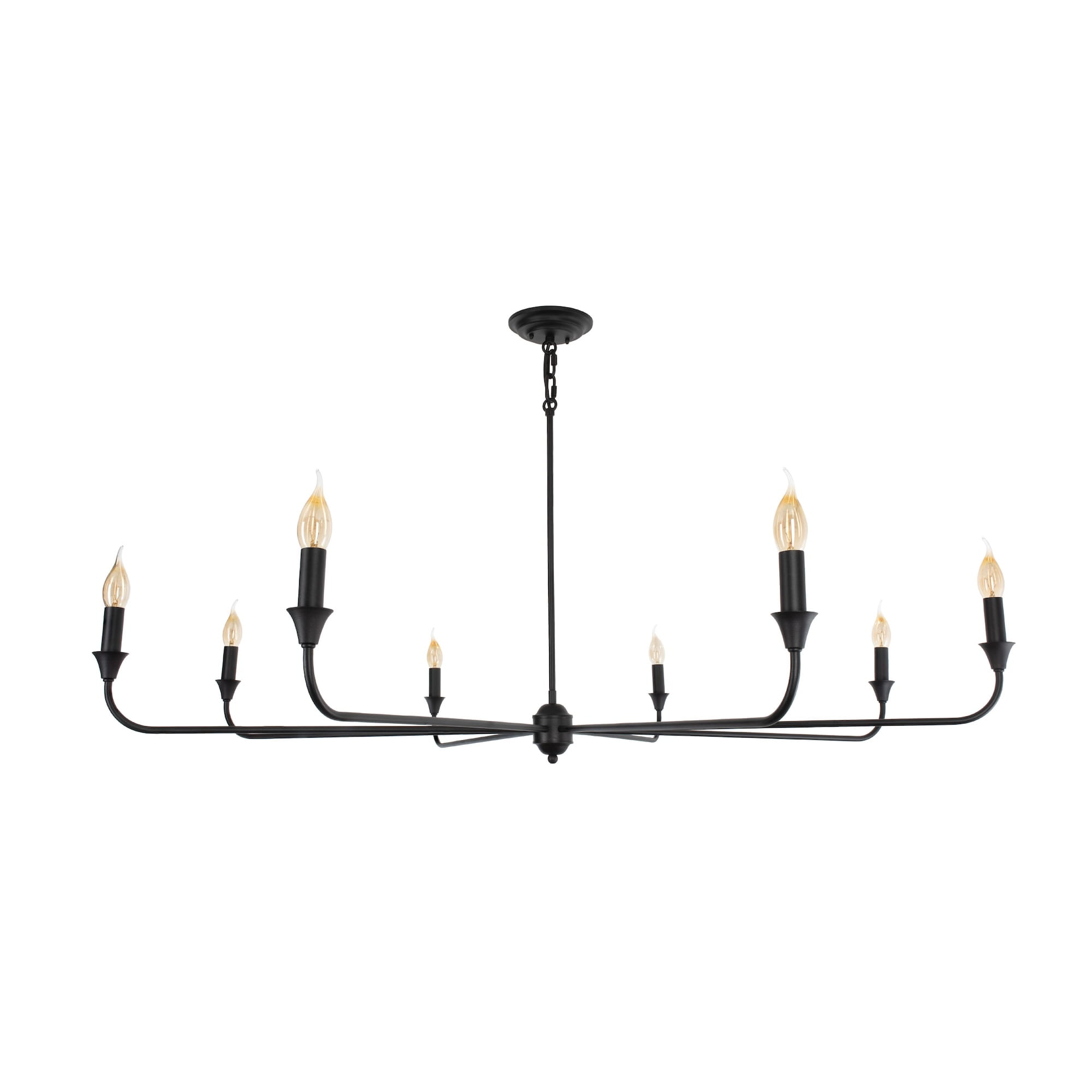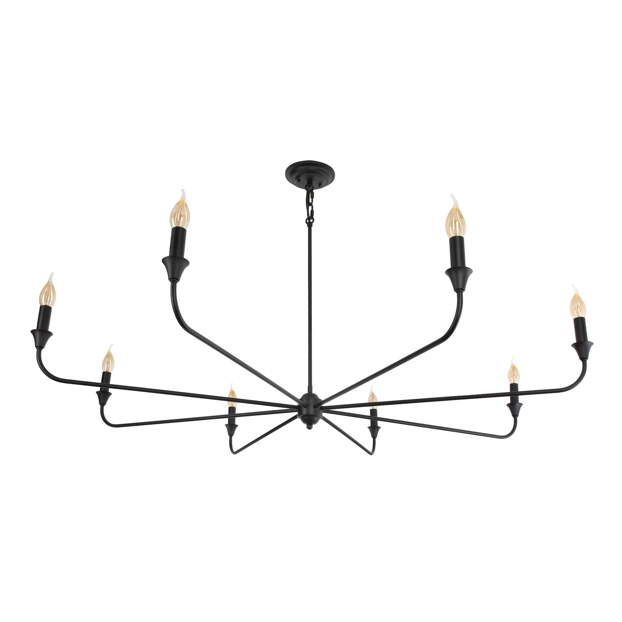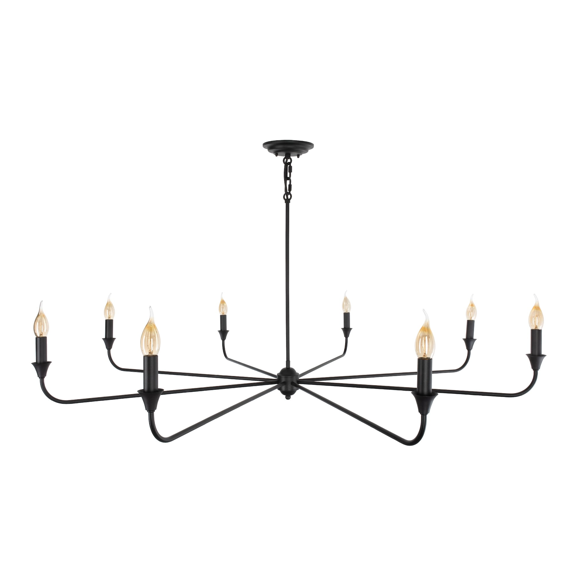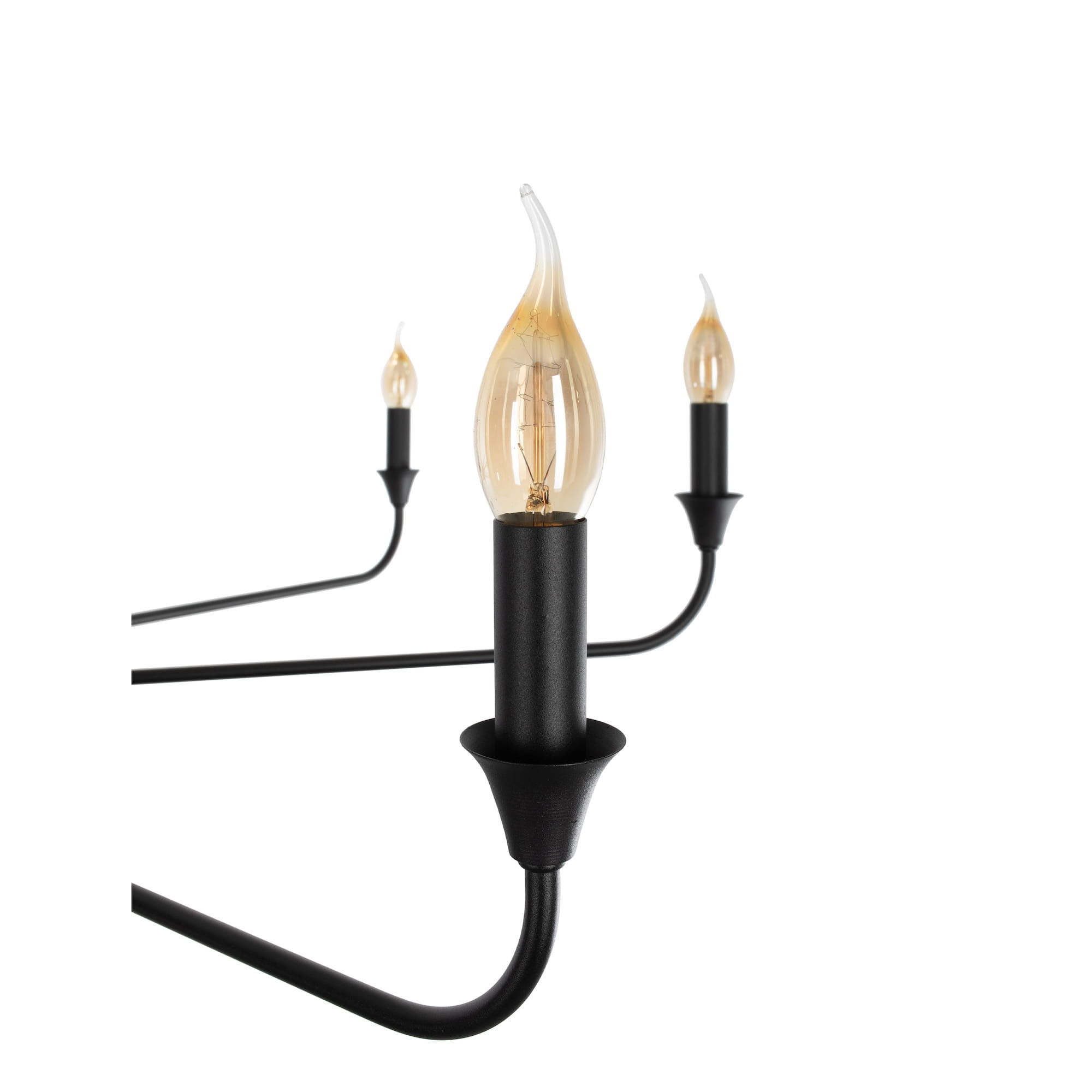 Klasyczny czarny żyrandol z kolekcji CHIC to ponadczasowy wybór głównego oświetlenia. 8 punktów świetlnych przypomina formą ozdobne świeczniki, co możesz podkreślić przez wybór żarówek przypominających płomyk świecy. Subtelną, czarną konstrukcję wieńczy ozdobne zawieszenie z metalową rurką, skrywającą przewód.