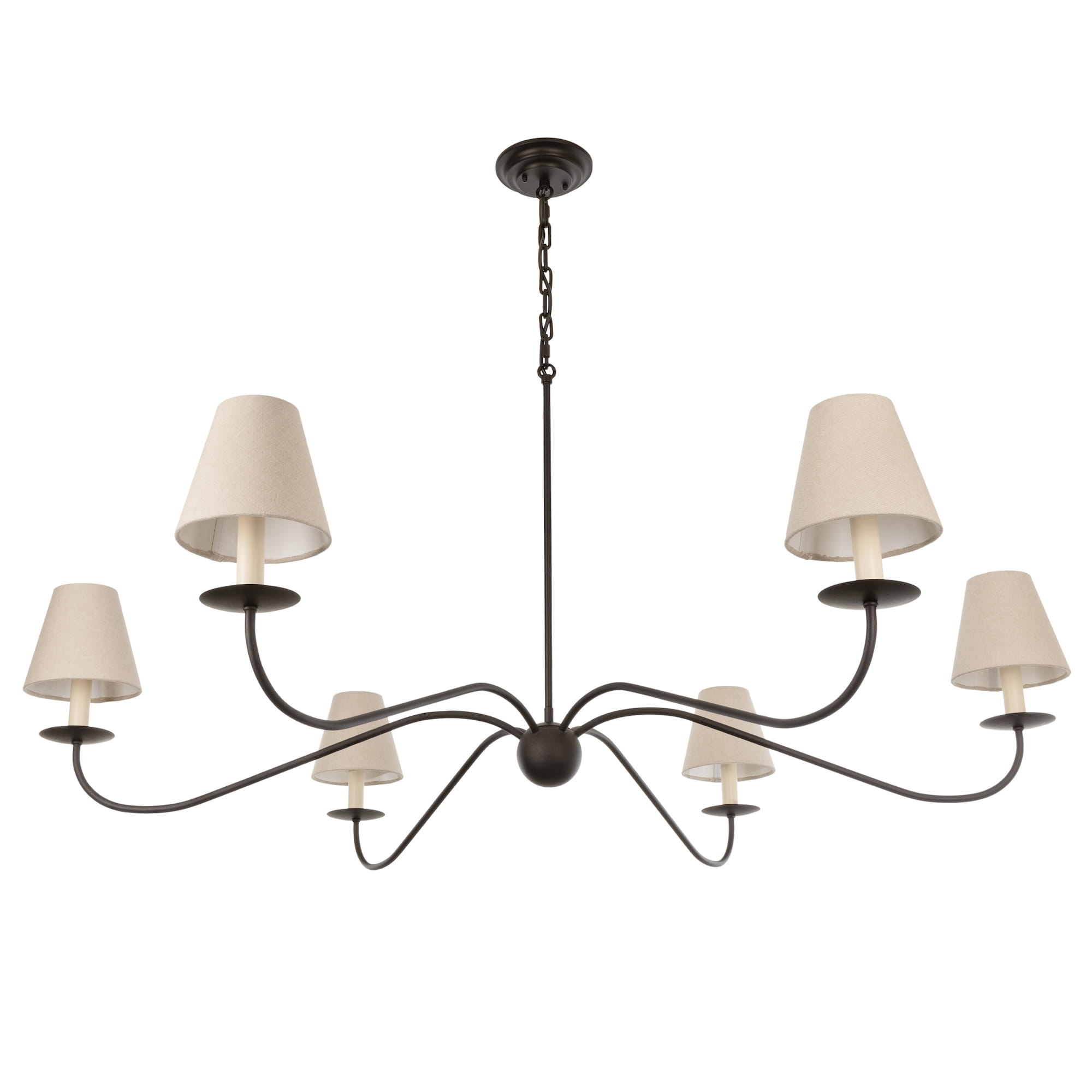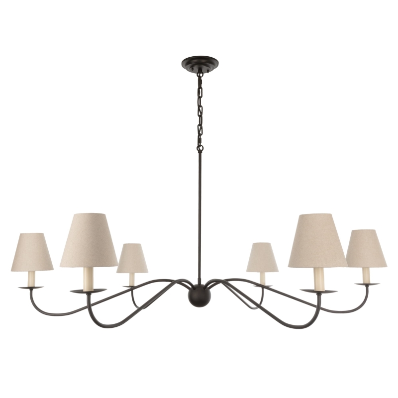 Czarny żyrandol z lnianymi abażurami z kolekcji ELEGANT to wyjątkowe oświetlenie to Twojego wnętrza. Elegancka, gięta konstrukcja wyróżnia się dużą średnicą, a jednocześnie optyczną lekkością. Całości dopełniają oprawki, które w połączeniu z żarówkami w kształcie płomyków, przypominają klimatyczne świece. Dzięki temu masz wiele możliwości aranżacji żyrandola - jeśli tylko będziesz potrzebować zmiany, wystarczy że zdejmiesz abażury z żarówek, a Twoje wnętrze nabierze nowego charakteru.