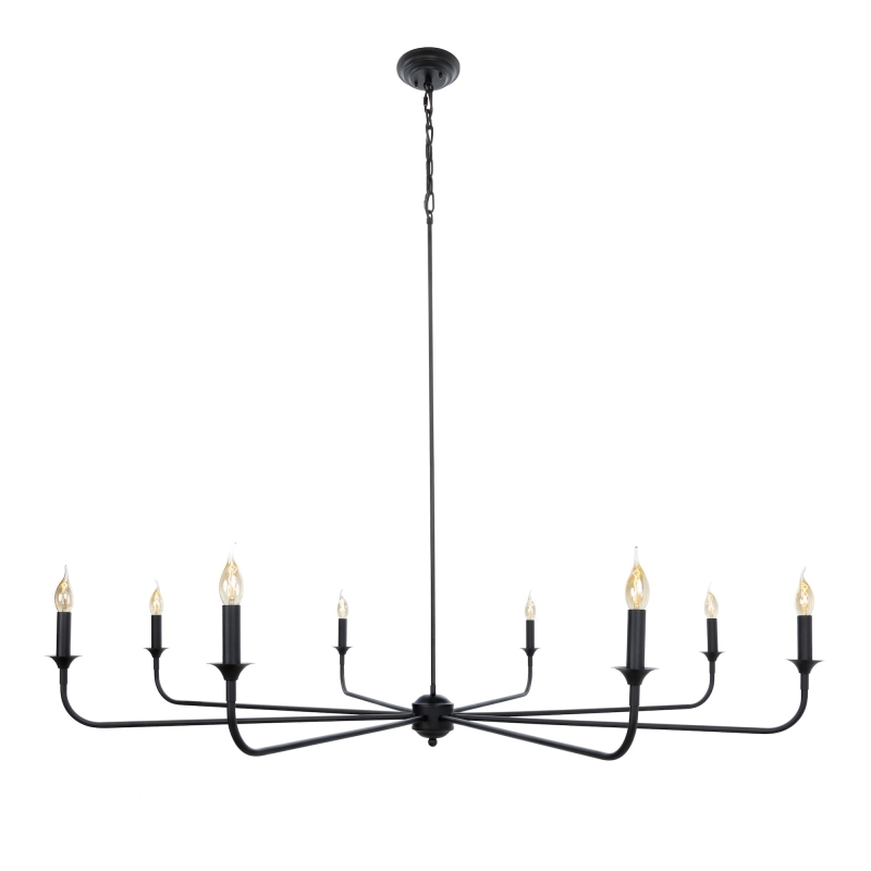 Duży czarny żyrandol modern farmhouse doskonale sprawdzi się w dużych pomieszczeniach urządzonych w klasycznym stylu. Ponadczasowe wzornictwo sprawia, że duży żyrandol odnajdzie się jako oświetlenie do różnych pomieszczeń. To pomysł na elegancki żyrandol do salonu, lampę do przestronnej kuchni, jak również oświetlenie do restauracji lub klimatycznego hotelu. Zdecyduj, czy odnajdzie się w Twojej przestrzeni.