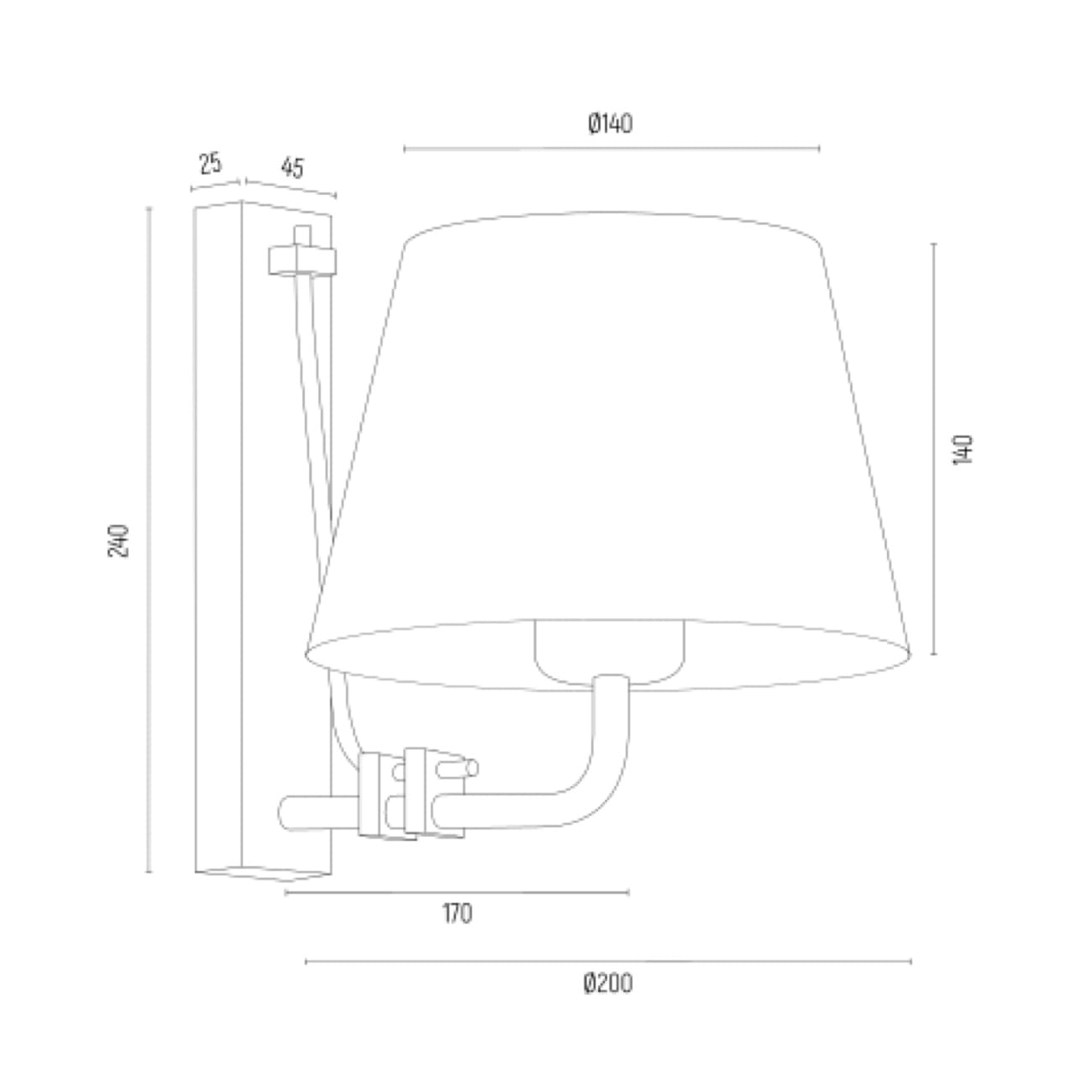 - Klasyczny, stożkowy abażur z plisowanej tkaniny w kolorze śmietankowym, zapewniający zmiękczone światło.