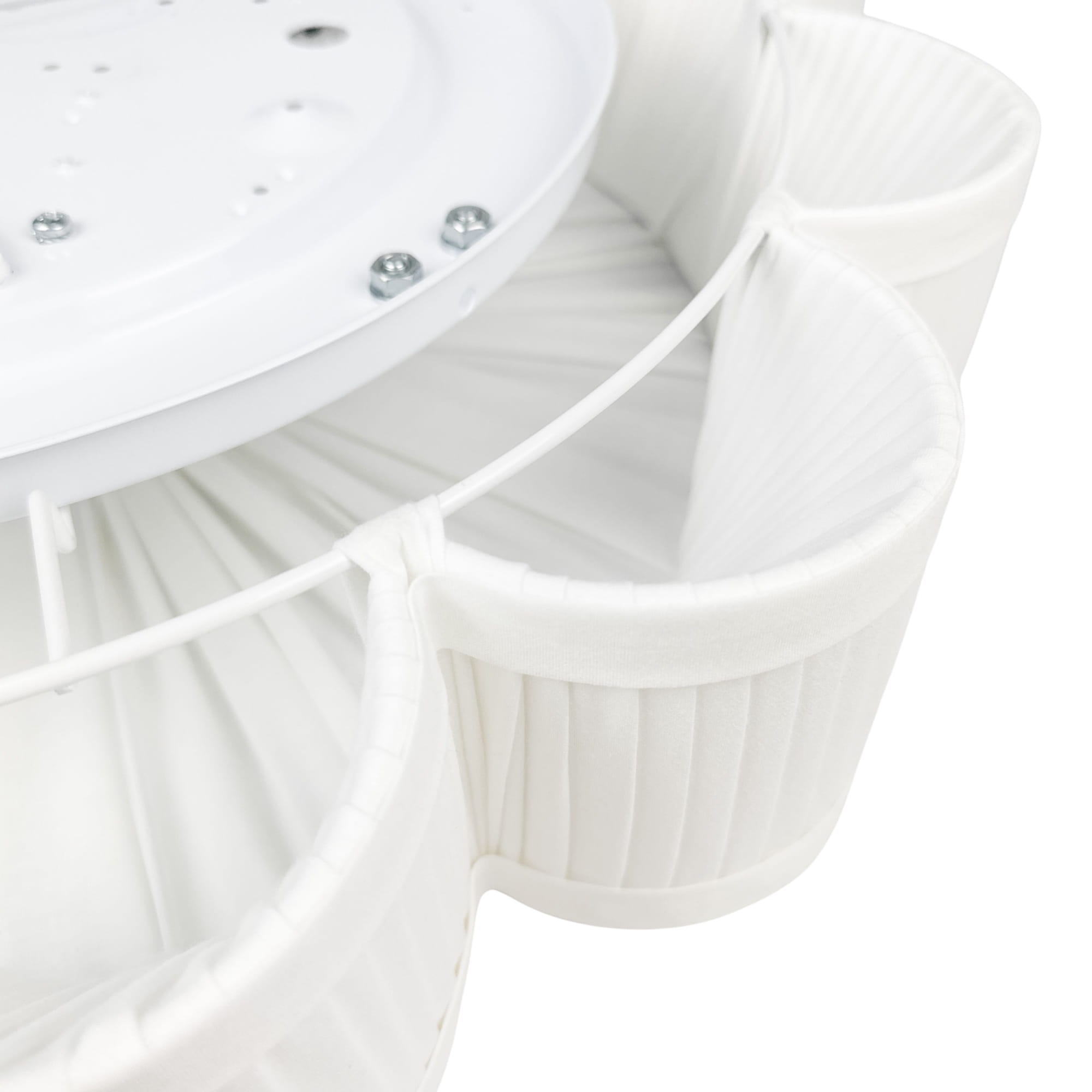 Dekoracyjność nie wyklucza przy tym funkcjonalności. Dopracowana konstrukcja pozwala na zastosowanie lamp PEONIA w formie plafonu, jak również kinkietu, co daje ogromne możliwości aranżacyjne. Prosty sposób mocowania abażura do oprawy lampy sprawia, że łatwo utrzymać ją w czystości. Wystarczy przyłożyć abażur do magnesów w metalowej oprawie, które utrzymają go na miejscu lub analogicznie odsunąć abażur od nich, aby go zdjąć. Wyselekcjonowana tkanina bawełniana w odcieniu śmietankowej bieli zapewnia idealnie rozproszone światło, które wydostaje się z lampy przez każdą część abażura oraz delikatnie doświetla ścianę.