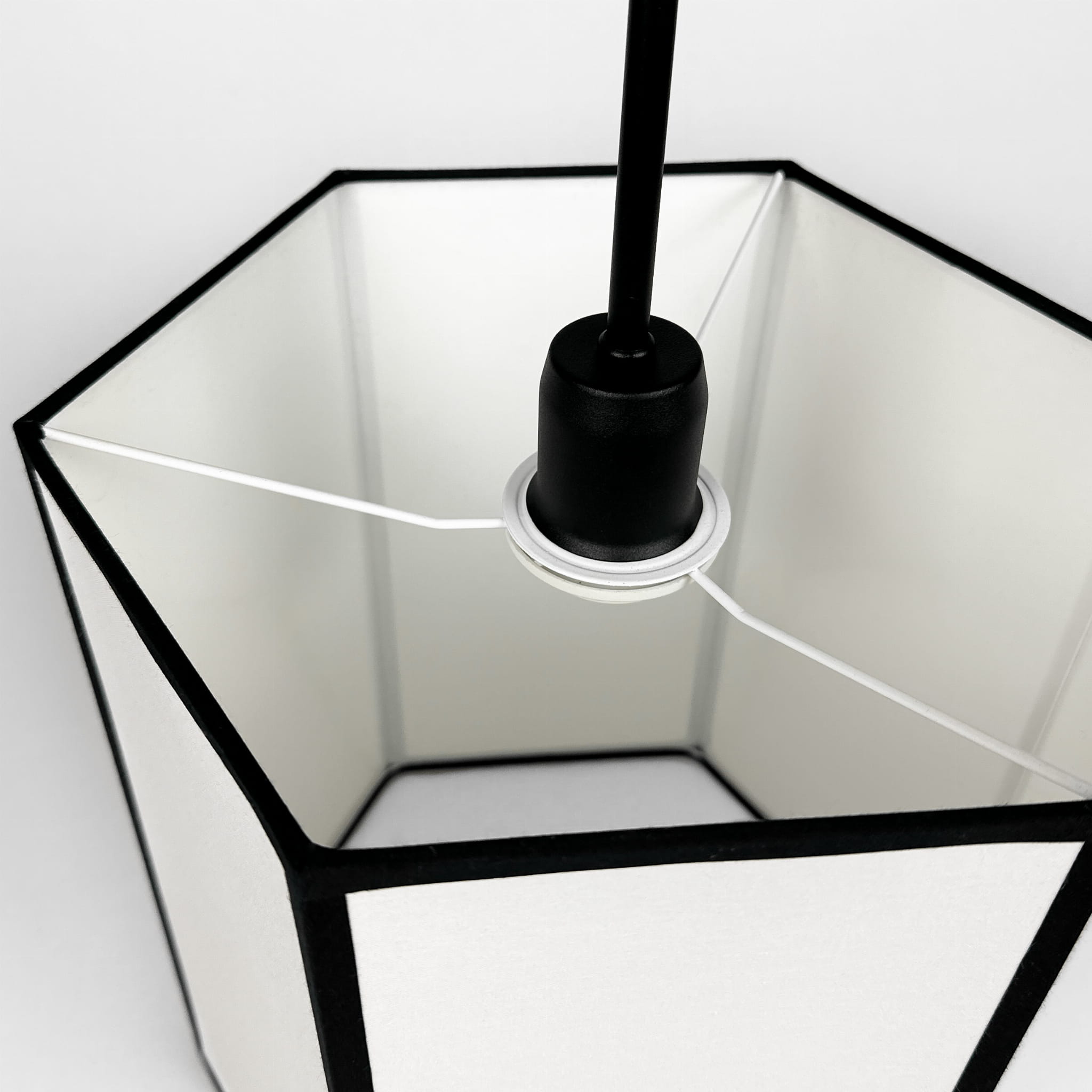 Biało-czarna sześciokątna lampa wisząca GABIA I to: