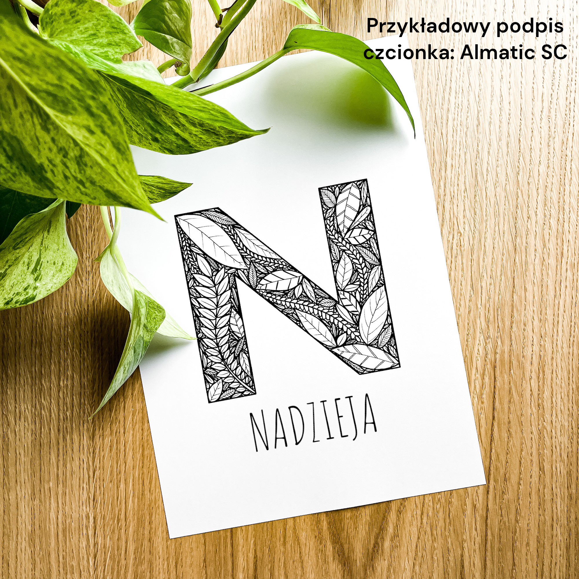 Plakat z literą N możesz wybrać również w wariancie z podpisem, np. imieniem lub datą. Jak zamówić taką wersję?