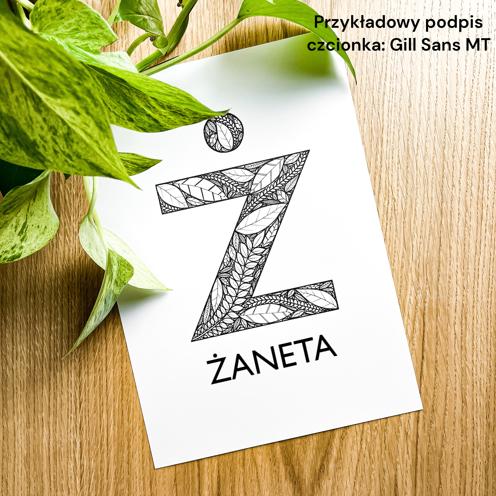 Plakat z literą Ż możesz wybrać również w wariancie z podpisem, np. imieniem lub datą. Jak zamówić taką wersję?