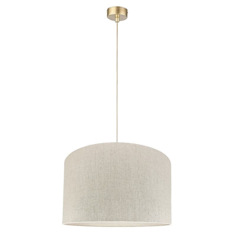 Lampa wisząca z lnianym abażurem z kolekcji LINO to ponadczasowy wybór oświetleniowy. Tkanina lniano-bawełniana wprowadzi przytulność do różnorodnych wnętrz dzięki naturalnej kolorystyce. Na uwagę zasługuje również nietuzinkowe wykończenie - abażur jest wykończony tkaniną nie tylko na zewnątrz, ale również w środku. Daje to efekt spójności i elegancji oraz zapewnia klimatyczne światło, które delikatnie przenika przez ściany abażura, podkreślając piękne sploty tkaniny. Lniany abażur połączyliśmy z klasycznym, prostym zawieszeniem w eleganckim odcieniu złota, tworząc harmonijną całość.