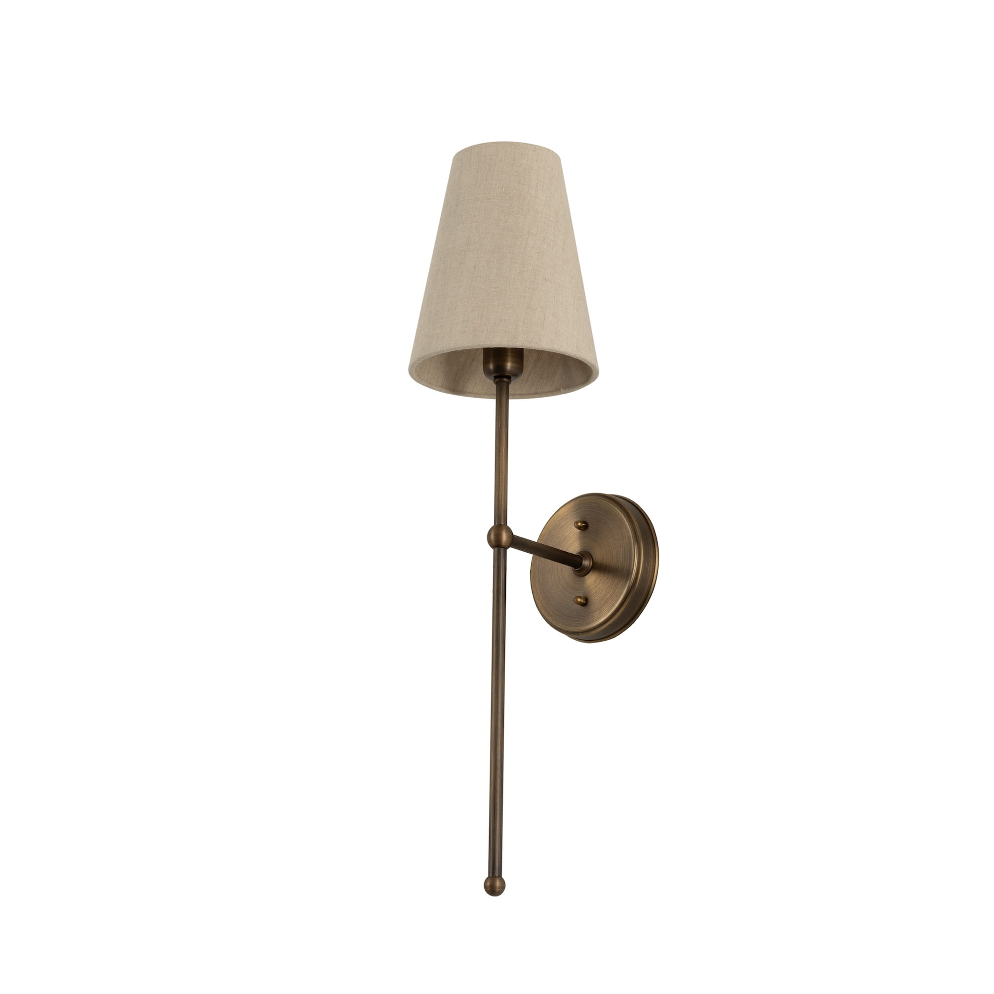 Mosiężny kinkiet postarzany z wąskim abażurem BASIC len