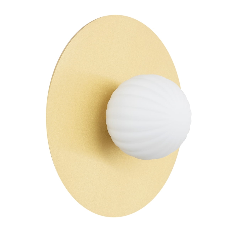 Mosiężny plafon/kinkiet talerz z kulistym kloszem z mlecznego szkła PALOMA to:
