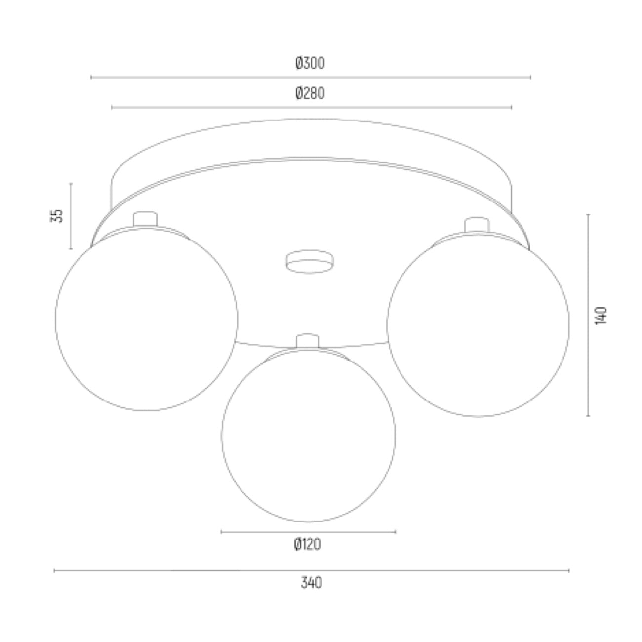 - 3 punkty świetlne z kulistymi kloszami z mlecznego, ryflowanego szkła zapewniającymi zmiękczone światło.