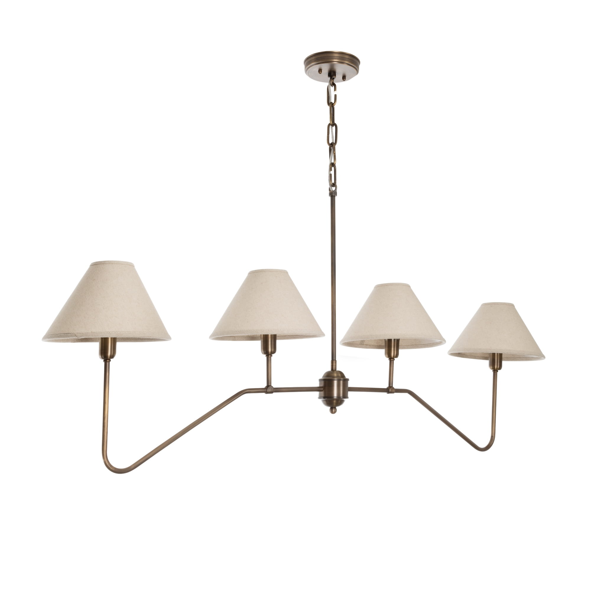 Mosiężny podłużny żyrandol postarzany z lnianymi abażurami SIMPLE to: