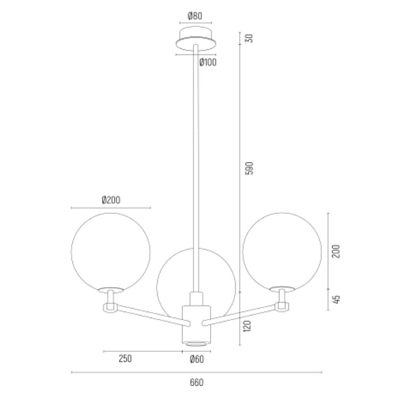 - 3 punkty świetlne z kulistymi kloszami z mlecznego szkła ryflowanego.