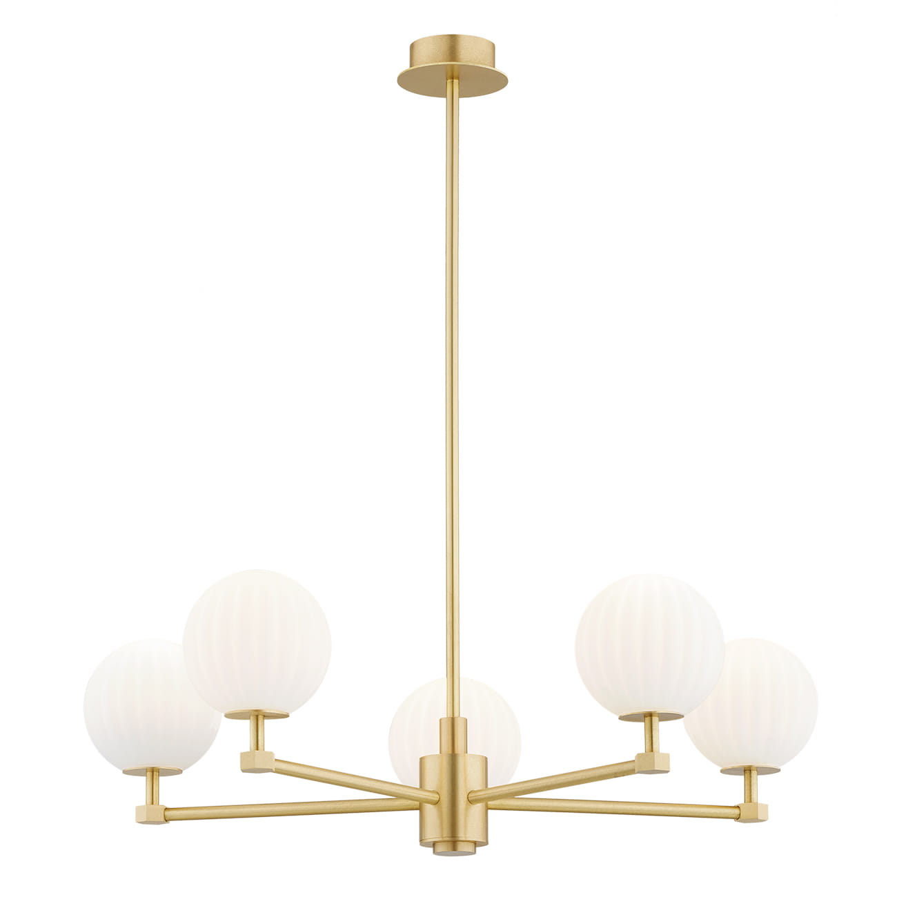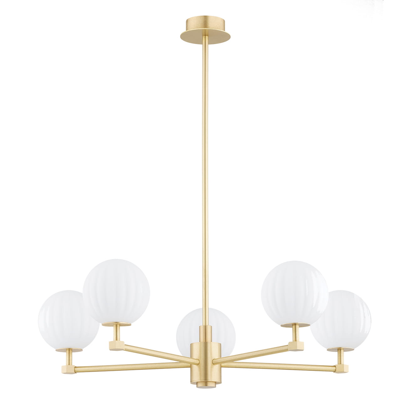 Mosiężny żyrandol pięcioramienny z kulami z mlecznego szkła PALOMA 5 to: