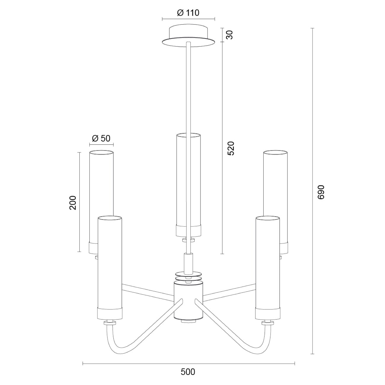 - 5 punktów świetlnych z cylindrycznymi kloszami z mlecznego szkła