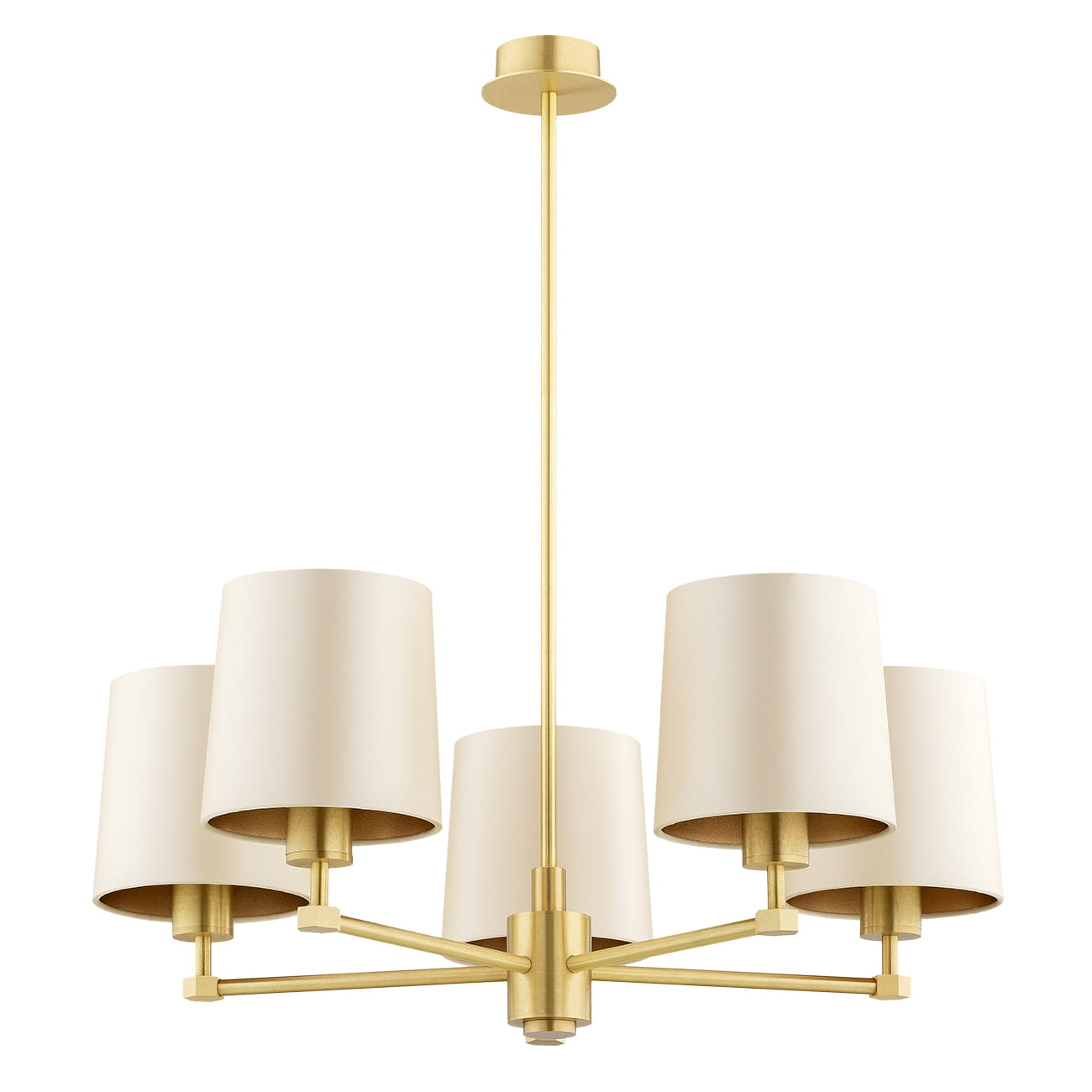 Mosiężny żyrandol pięcioramienny z beżowymi abażurami satynowymi PRINCETON 5 to: