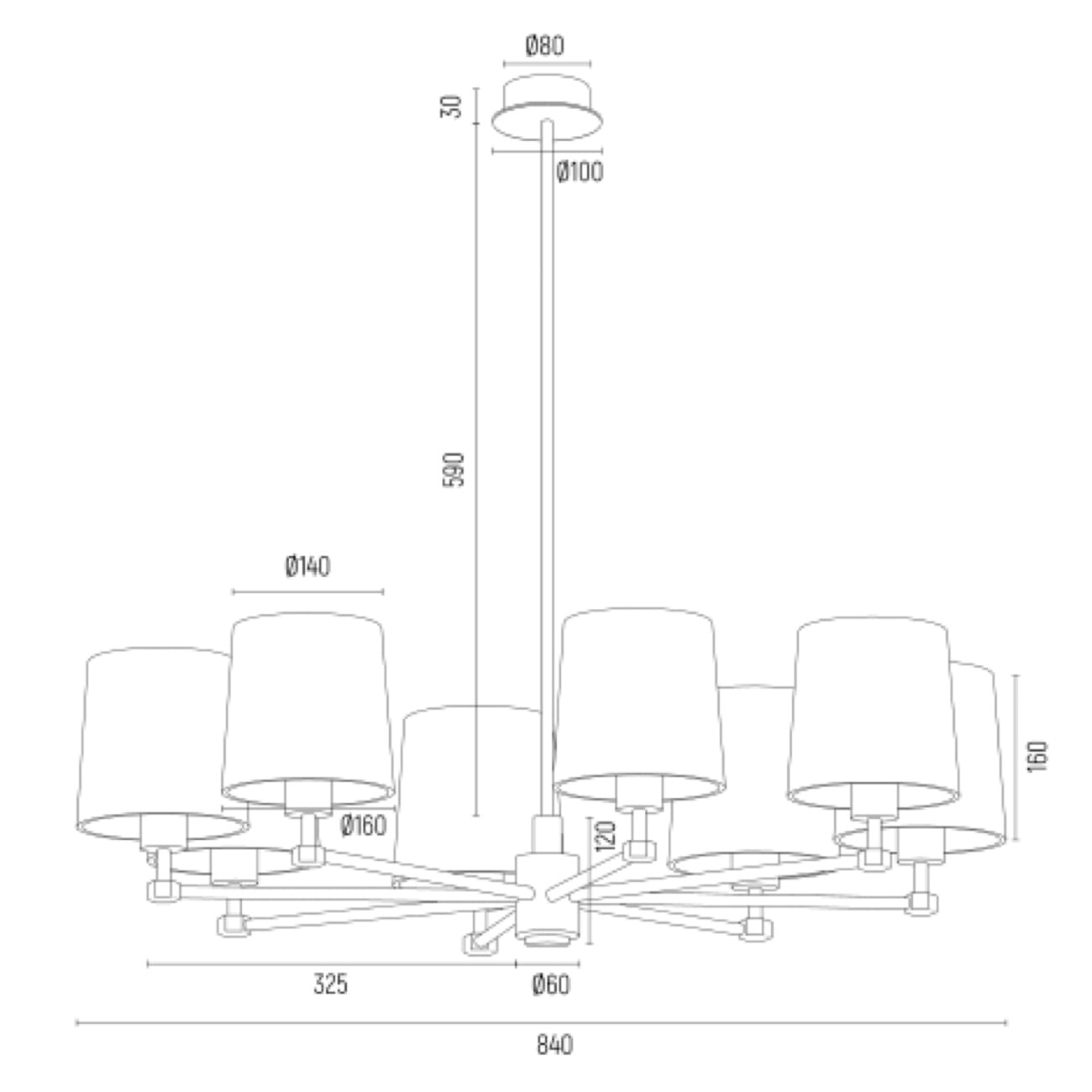 - 8 punktów świetlnych ze stożkowymi, satynowymi abażurami w kolorze beżowym