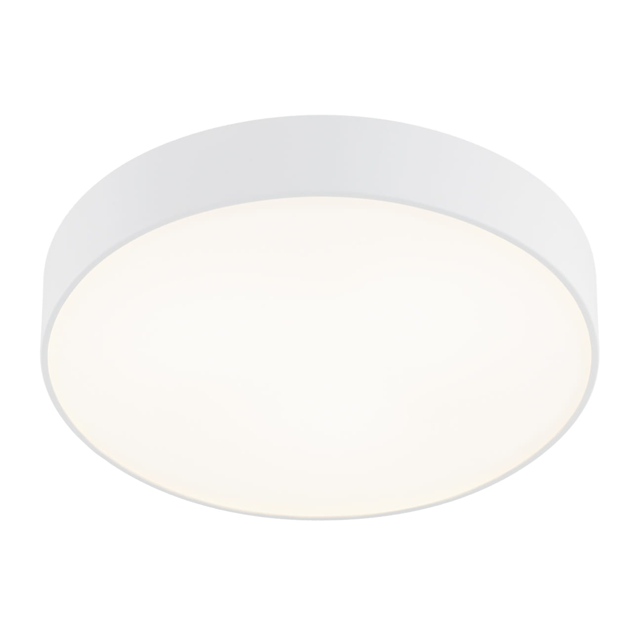 Biały plafon to klasyczna, prosta forma, która odnajdzie się w wielu wnętrzach jako bazowe oświetlenie. Prosty, metalowy klosz został uzupełniony blendą z mlecznego szkła, która idealnie rozprasza światło. Dzięki temu to lampa sufitowa, która nie razi w oczy, a świetnie oświetla przestrzeń miękkim światłem.