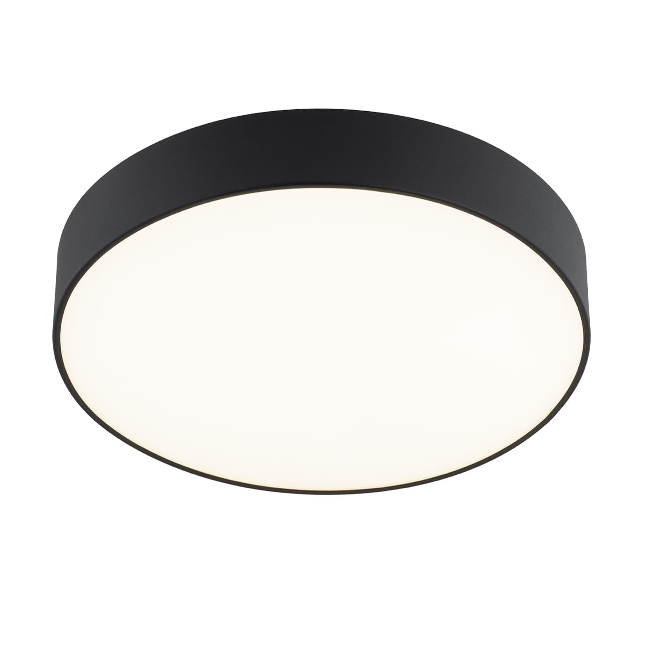Czarny plafon to klasyczna, prosta forma, która odnajdzie się w wielu wnętrzach jako bazowe oświetlenie. Prosty, metalowy klosz został uzupełniony blendą z mlecznego szkła, która idealnie rozprasza światło. Dzięki temu to lampa sufitowa, która nie razi w oczy, a świetnie oświetla przestrzeń miękkim światłem.
