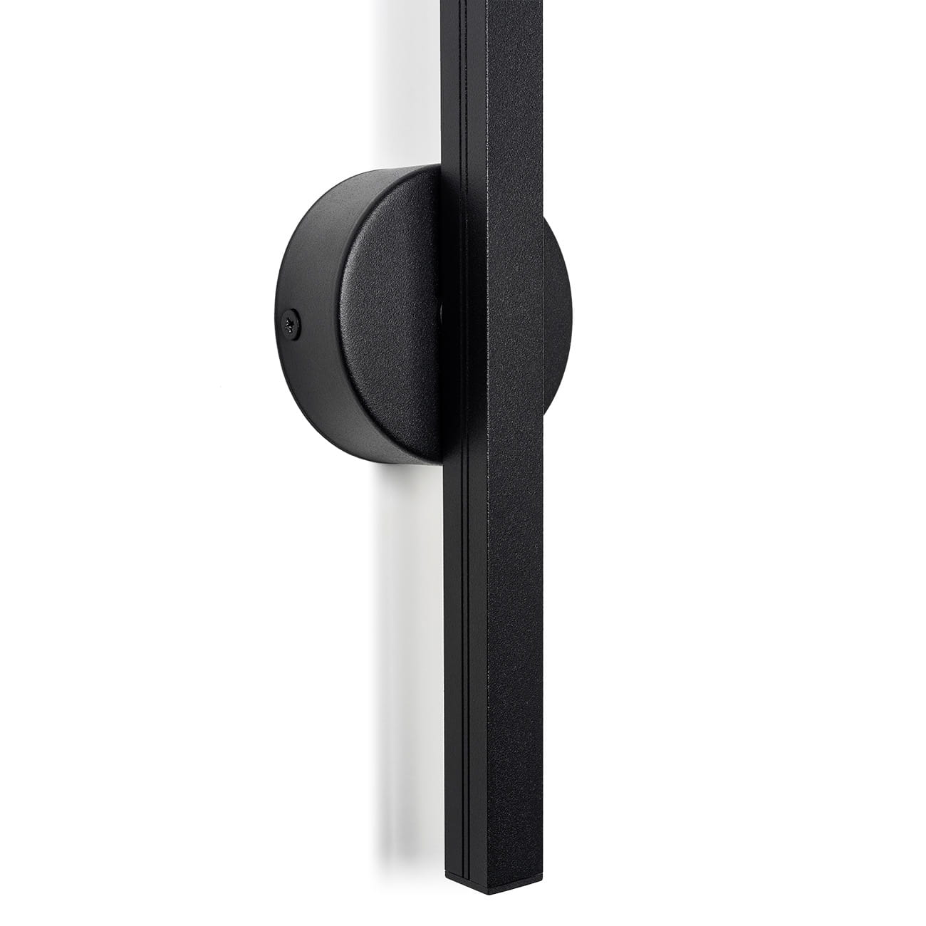 - Prosty kinkiet w formie listwy, wykonany ze stali polakierowanej na kolor czarny.