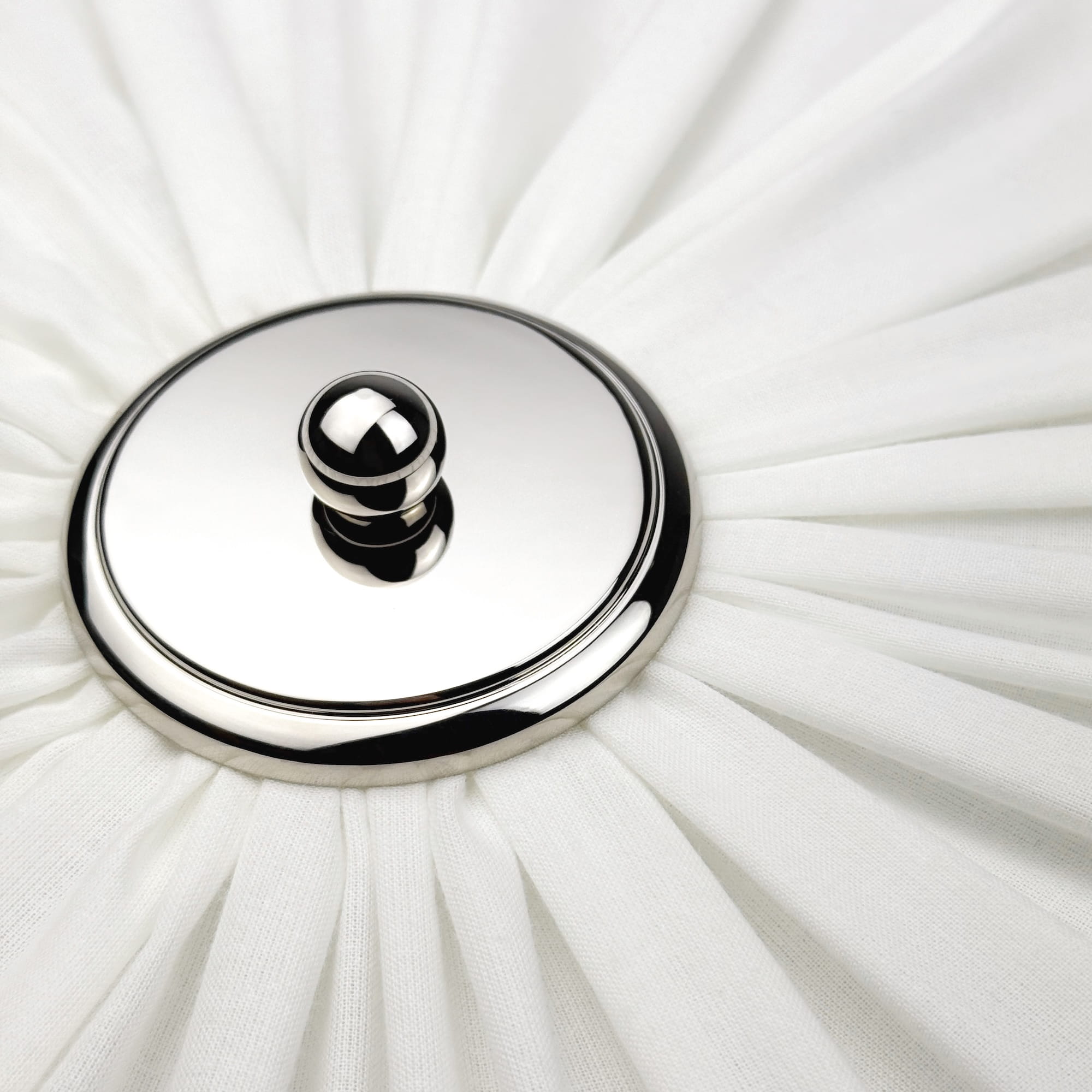 Lniana lampa PLISE to oświetlenie na lata. Wszystko dzięki jej nieprzemijającemu wzornictwu, które nigdy się nie znudzi. Nie oznacza to oczywiście, że to lampa bez charakteru, oj nie! Ponadczasową bazą tej lampy jest abażur wykonany z naturalnej tkaniny lniano-bawełnianej, wprowadzającej do wnętrza kojące ciepło. Misternie udrapowana tkanina bawełniana w odcieniu złamanej bieli dodaje mu eleganckiej subtelności. Całości dopełnia mosiężny dekor w polerowanym, niklowanym wykończeniu pełen zachwycających detali, stając się oświetleniową biżuterią.