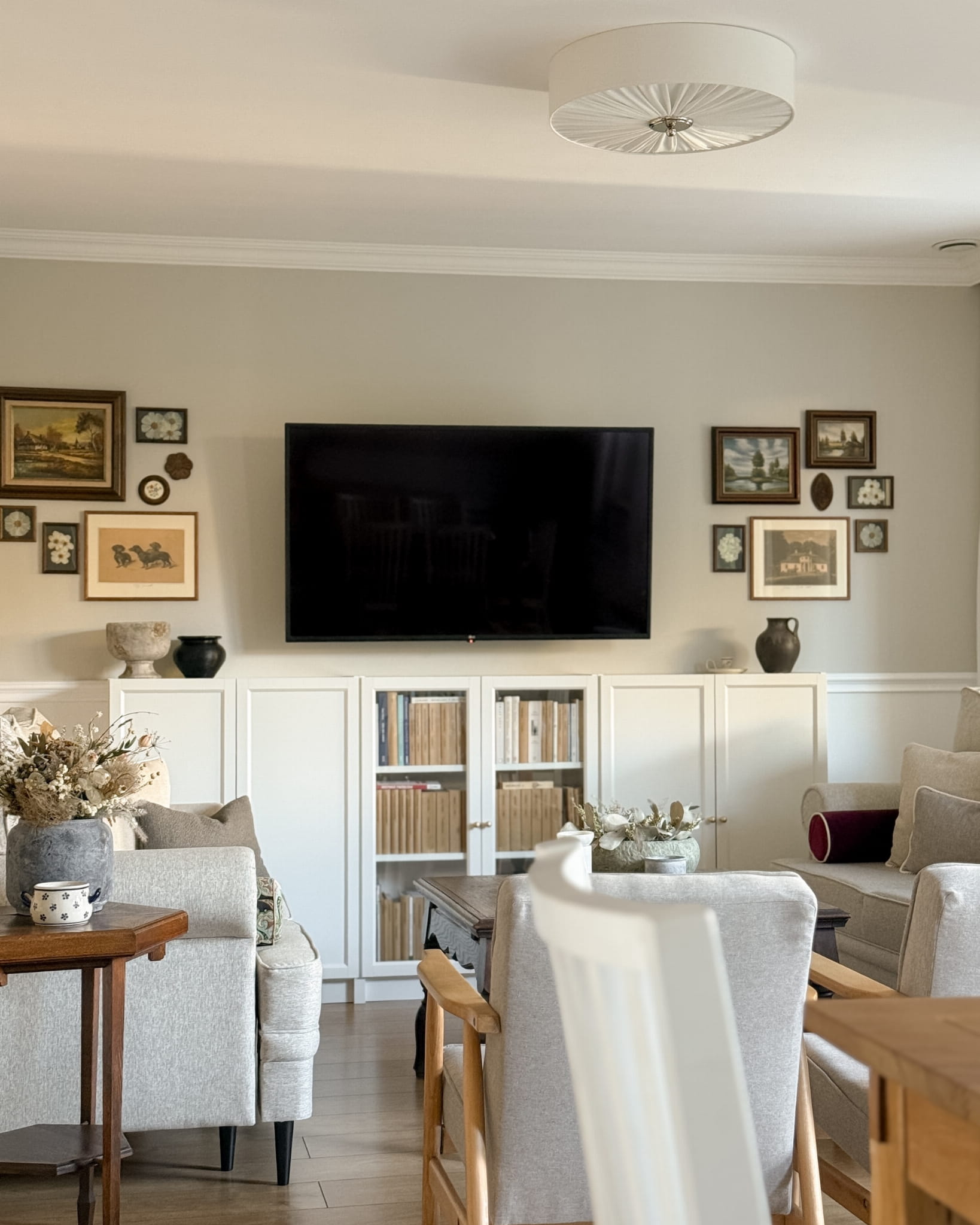 - Elegancki abażur w odcieniu złamanej bieli zapewniający przyjemne, miękkie światło
