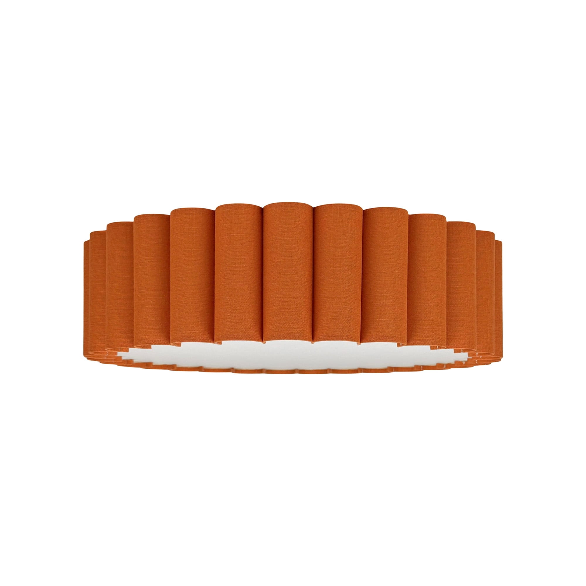Lampę sufitową z kolekcji ONDE możemy z pewnością nazwać oświetleniową biżuterią. Cała kolekcja zachwyca misternymi detalami, wyselekcjonowanymi materiałami i nietuzinkową formą z ozdobnym, pofalowanym brzegiem. Uwagę szczególnie zwraca intrygujący, pomarańczowy kolor abażura. Zastosowana przez nas tkanina lniana łączy energetyczną intensywność z lekko stonowanym odcieniem.