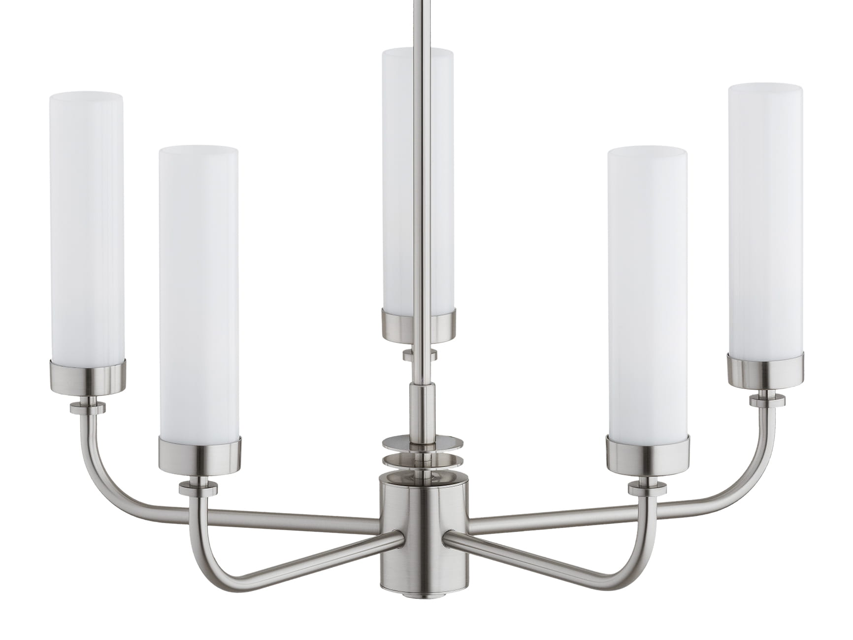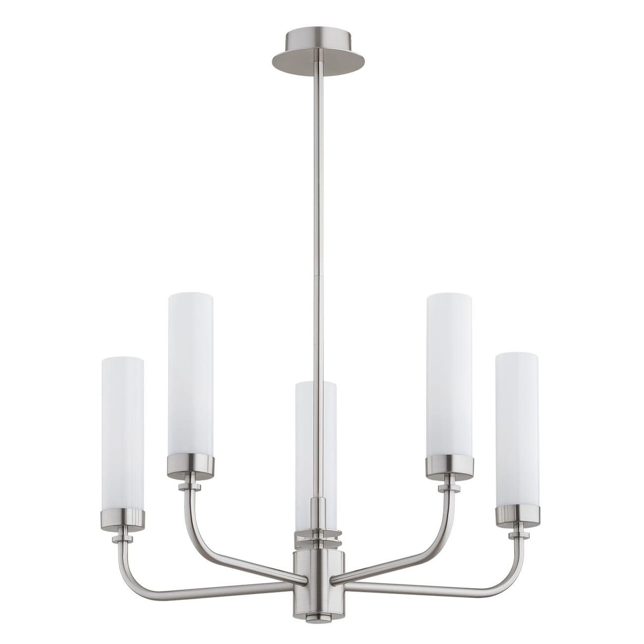 Srebrny niklowany żyrandol pięcioramienny z kloszami z mlecznego szkła PRESTON to: