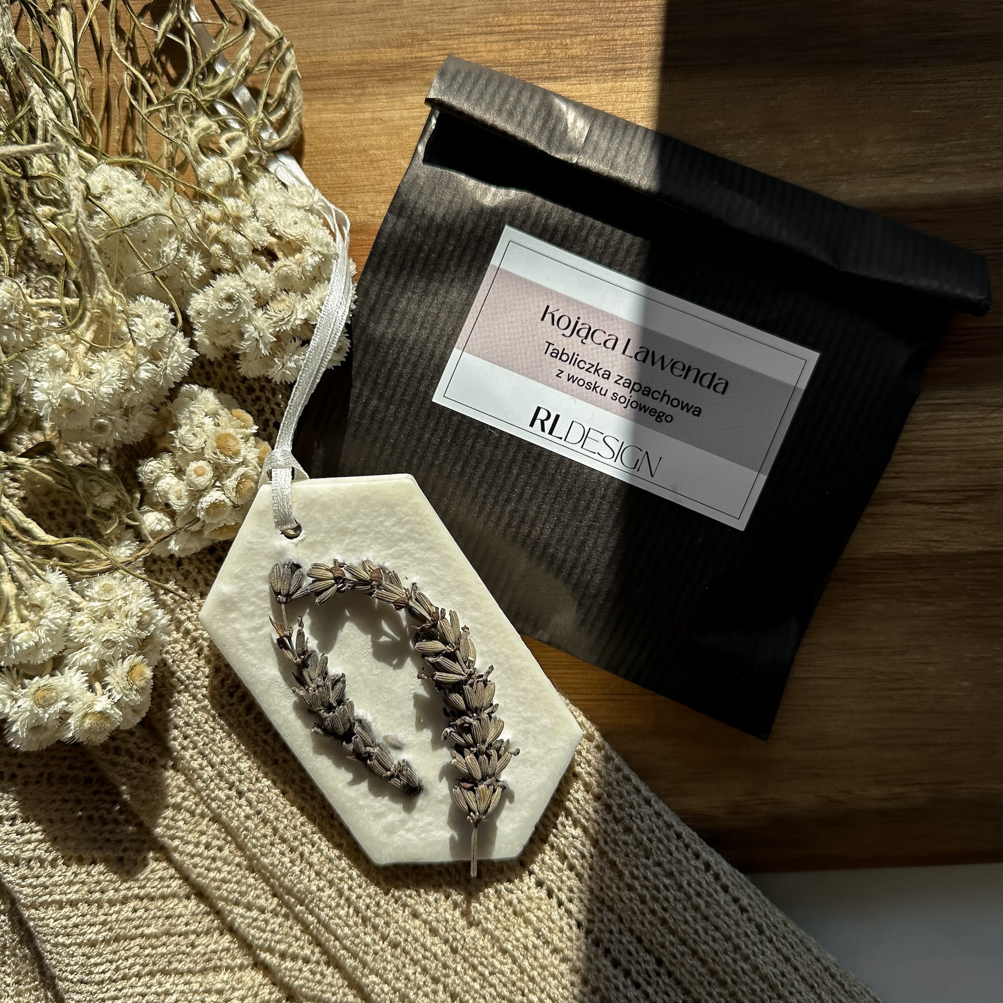 - Praktyczna forma - tabliczka zapachowa ze wstążką nadaje się do zawieszenia na haczyku lub drążku w szafie, jak również do położenia w szufladzie. Ponadto dzięki wzmocnieniu w formie tabliczki ze sklejki drewnianej wewnątrz, nie musisz się martwić o to, że wosk pęknie w trakcie użytkowania.