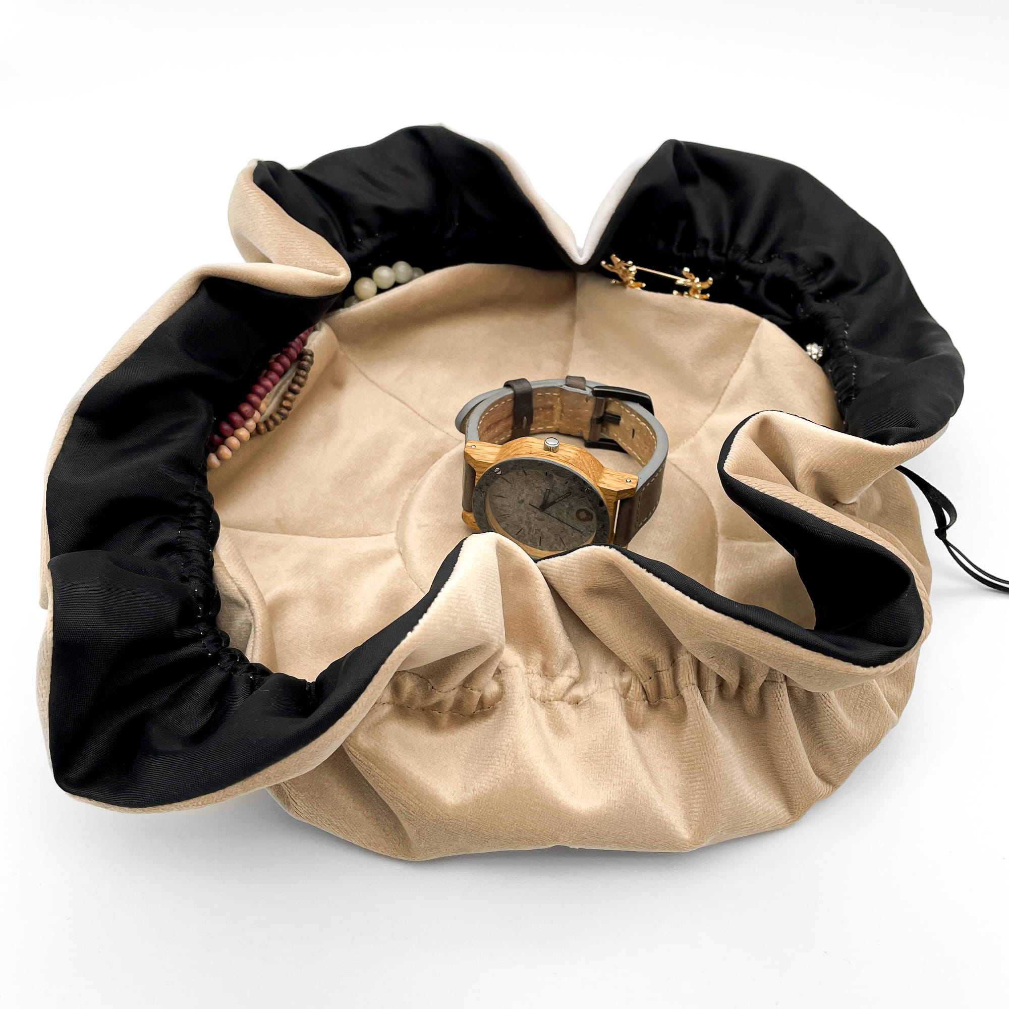 - Organizer na na podręczne drobiazgi i biżuterię w formie sakiewki z usztywnianą podstawą.