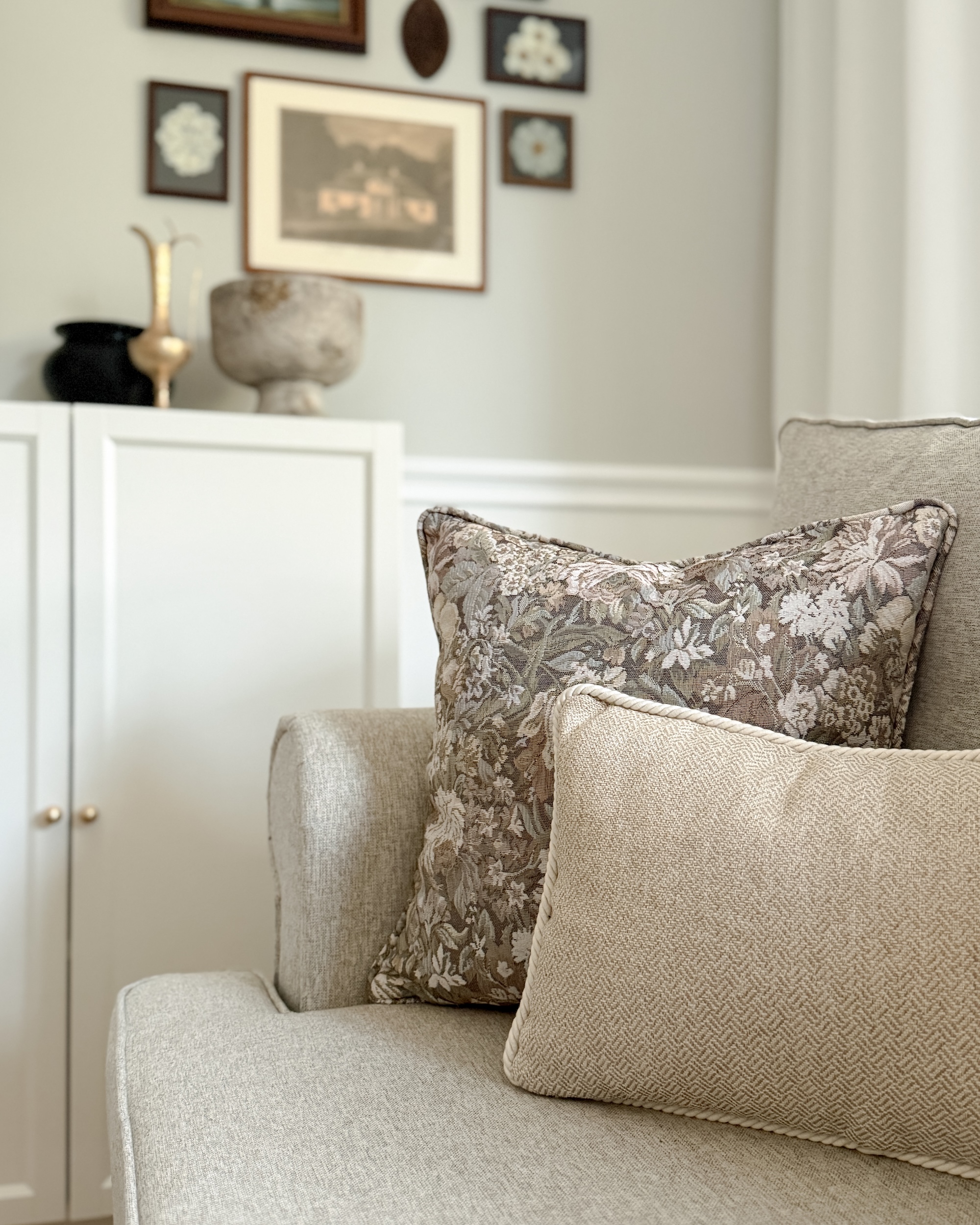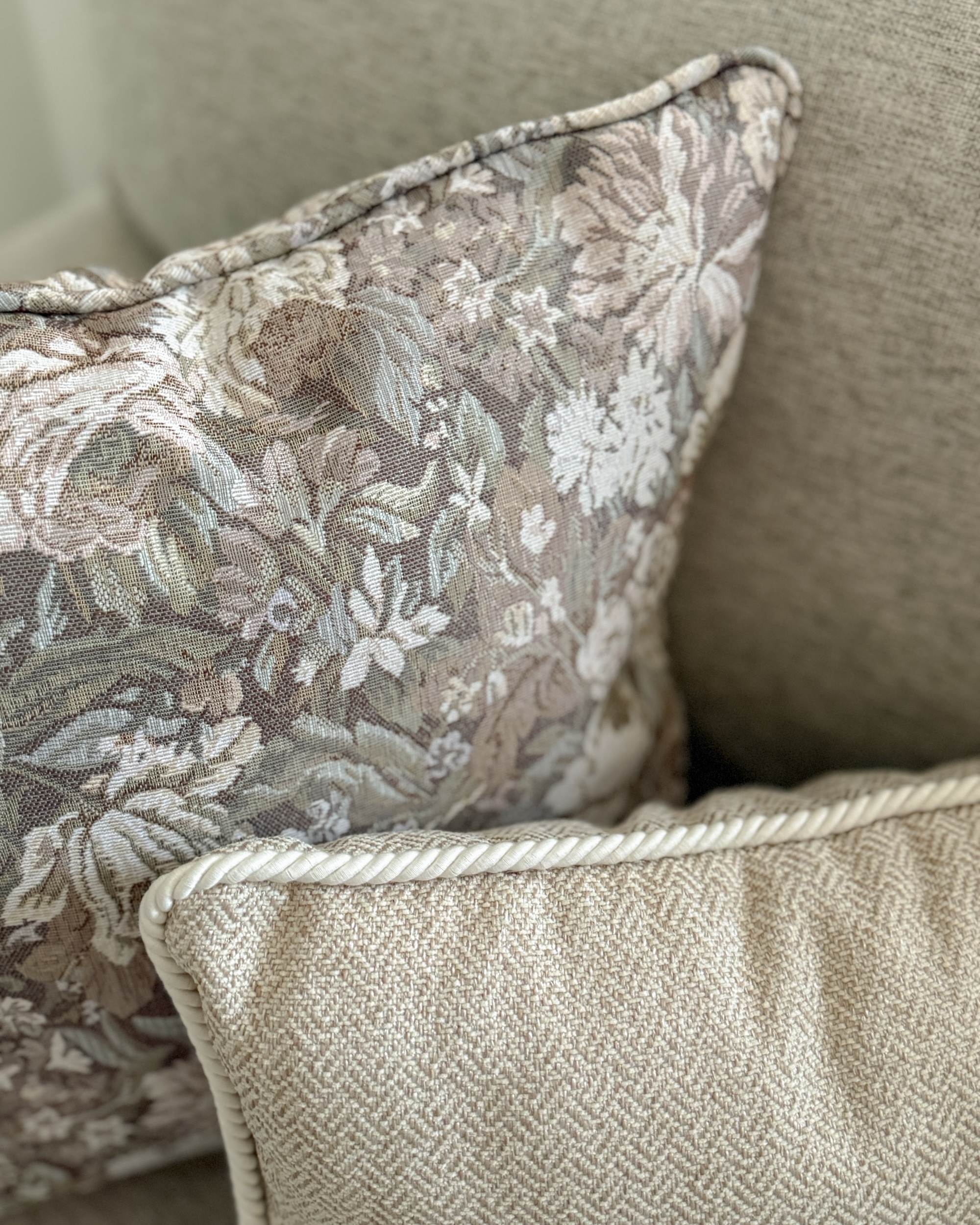 Zestaw żakardowych poszewek na poduszki No. 13 łączy tkaniny żakardowe z subtelnymi wzorami, dając efekt przytulności i ponadczasowości. Kwiatowy wzór w pastelowych odcieniach w poszewce ROSA oraz beżowa jodełka w poszewce GISELLE świetnie się komponują, wprowadzając świeżość i ciepło. Grube, żakardowe tkaniny wyróżniają się przy tym trwałością i komfortem użytkowania, dzięki czemu to wybór na lata. Cały zestaw wprowadza do każdego wnętrza ciepły, rustykalny klimat z nutą nostalgii wzorów w stylu vintage.