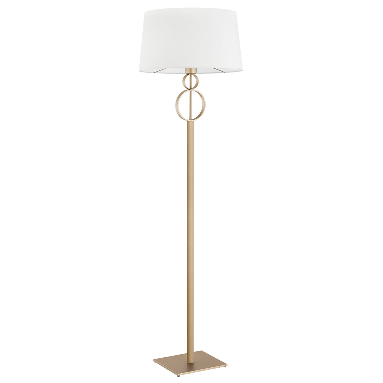 Złota lampa podłogowa ze śmietankowym abażurem PERSEO to: