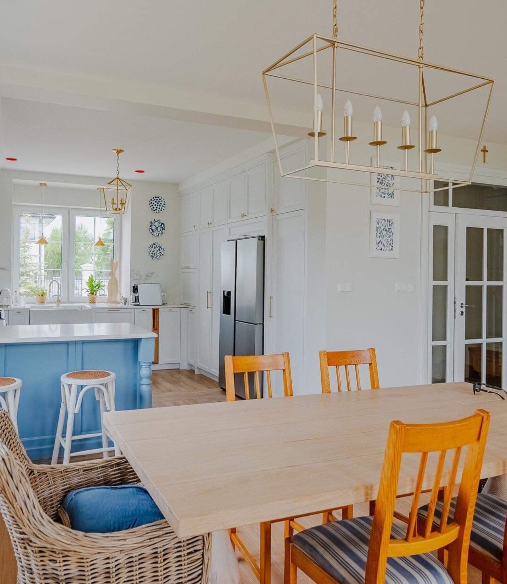 Złota podłużna lampa wisząca świetnie sprawdzi się jako lampa nad stół w jadalni lub podłużna lampa nad wyspę kuchenną.Wśród lamp z kolekcji GENTLE znajdziesz również inne rozmiary lamp, które pozwolą Ci stworzyć pasujące zestawy oświetlenia.