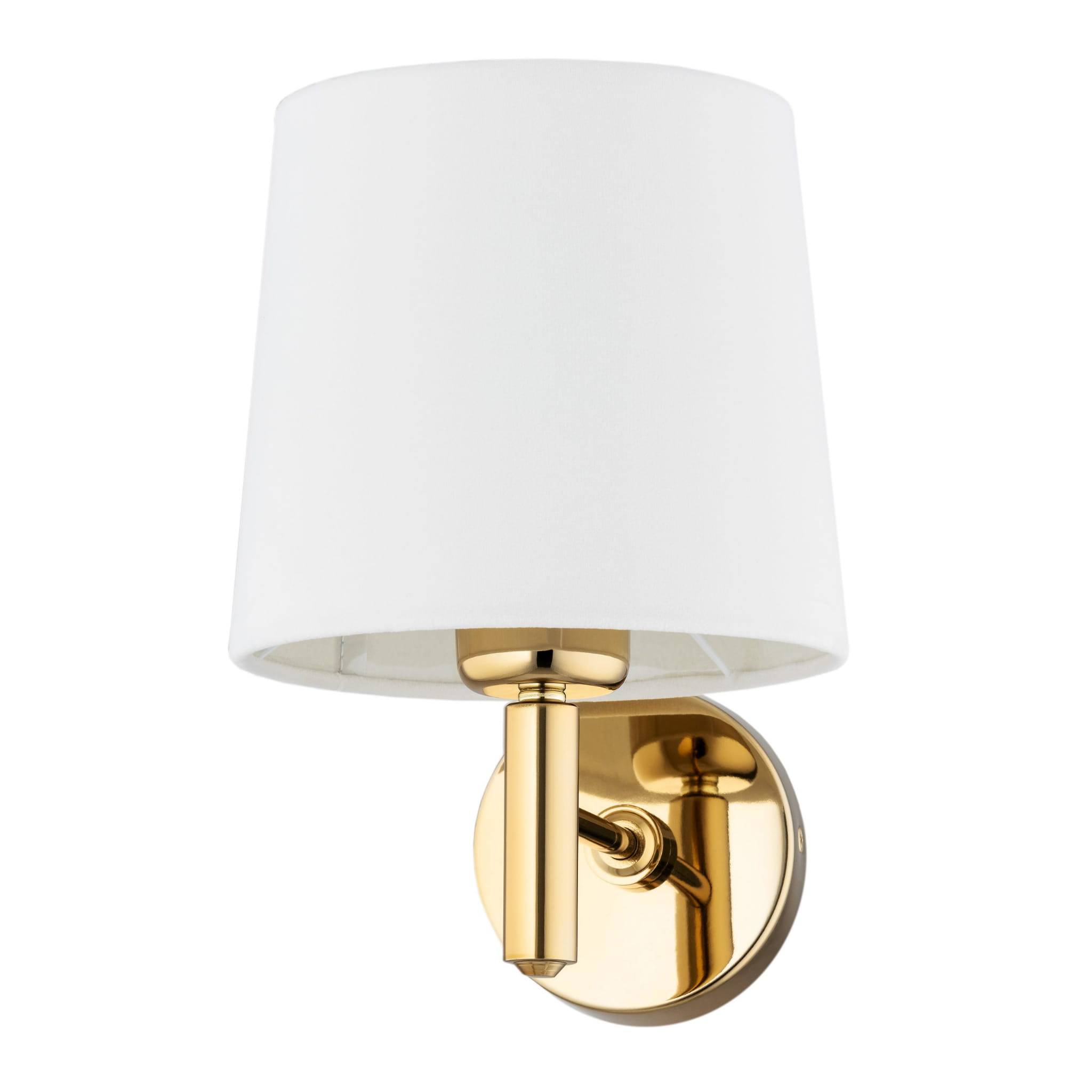 Kinkiet PONTE to świetna propozycja dla miłośników złotych dodatków we wnętrzach. Prosta, ponadczasowa konstrukcja została wykonana ze stali mosiądzowanej, wprowadzającej do wnętrza elegancję i ciepło. Całość świetnie uzupełnia stożkowy abażur z aksamitnego weluru w kolorze śmietankowym, zapewniający przyjemne światło.