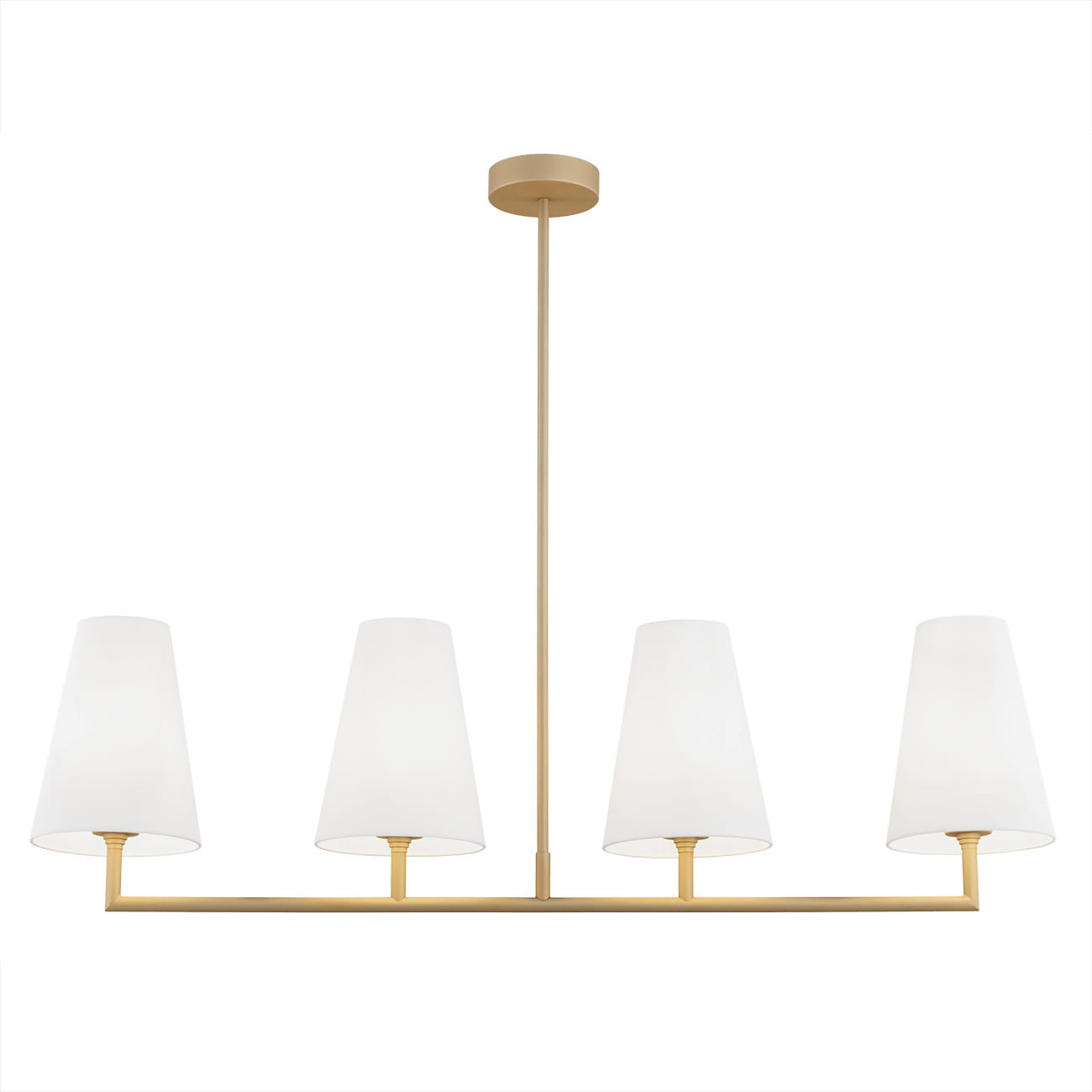 Podłużny złoty żyrandol z białymi abażurami SAFIANO to: